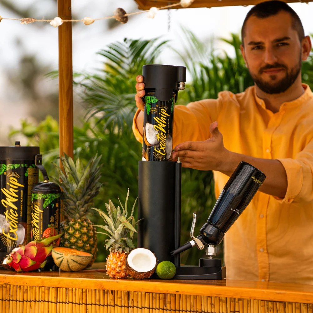 Cada cilindro é preenchido com capacidade máxima e testado para assegurar segurança, pureza e confiabilidade. Graças ao design profissional e à marca reconhecida internacionalmente, o Exotic Whip é a escolha ideal para gastronomia, eventos, casas noturnas e revendedores.